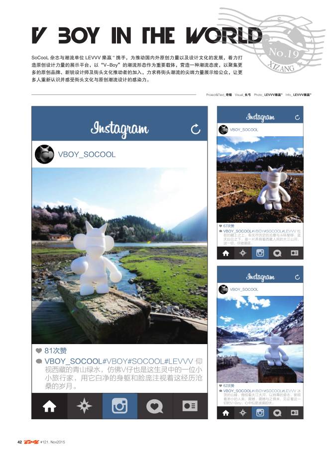 《SoCool》杂志与LEVVV乐赢''是长期的战略合作伙伴,从曾经每期的V-Boy世界游,V-Boy设计师及作品介绍,自有品牌LEVEL(烈威)的ChangeFace设计师介绍到设计师招募,在2015年合作里又增加了LEVVV乐赢''潮牌集中营的合作潮流品牌宣传照,此举带给了读者们更多的优质潮流品牌推荐。