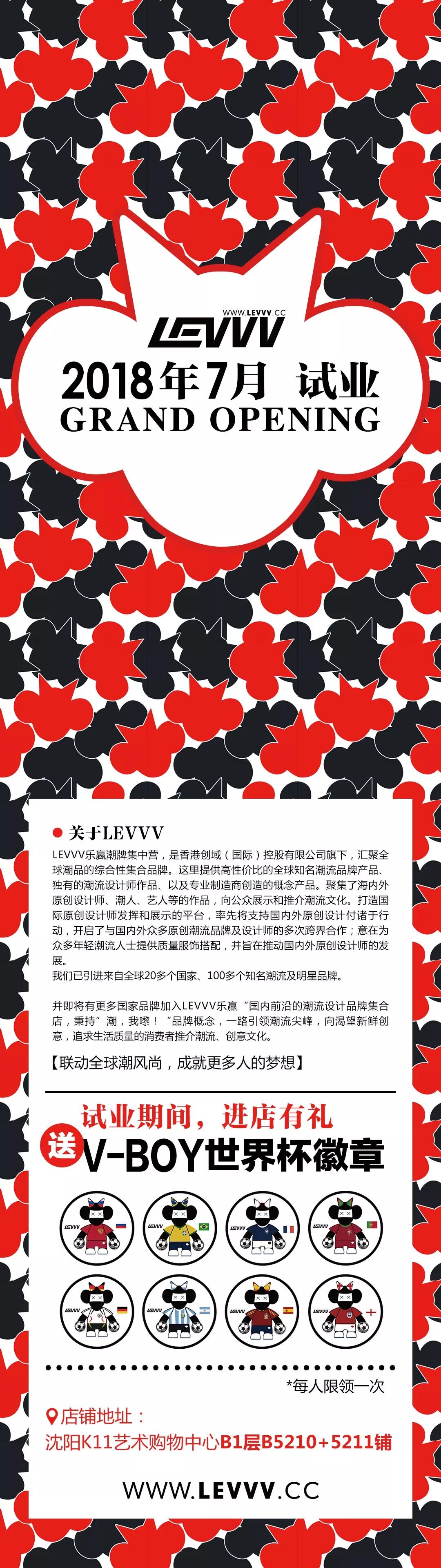 试业期间,部分商品五折哦~进店扫码关注LEVVV公众号,还有LEVVV世界杯系列徽章送给你们!